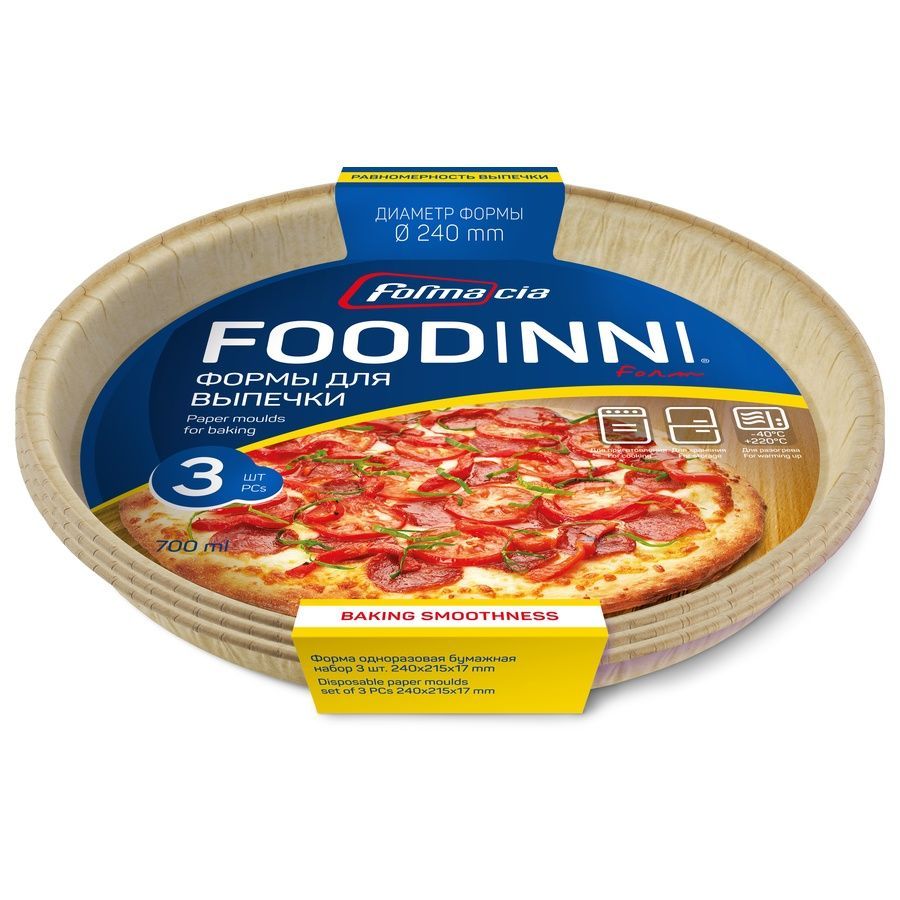 Набор из одноразовых бумажных форм, состоящий из трех штук. Тесто к формам из бумаги не пристает. Блюдо сохраняет свою форму и может быть подано на стол сразу из духовки.