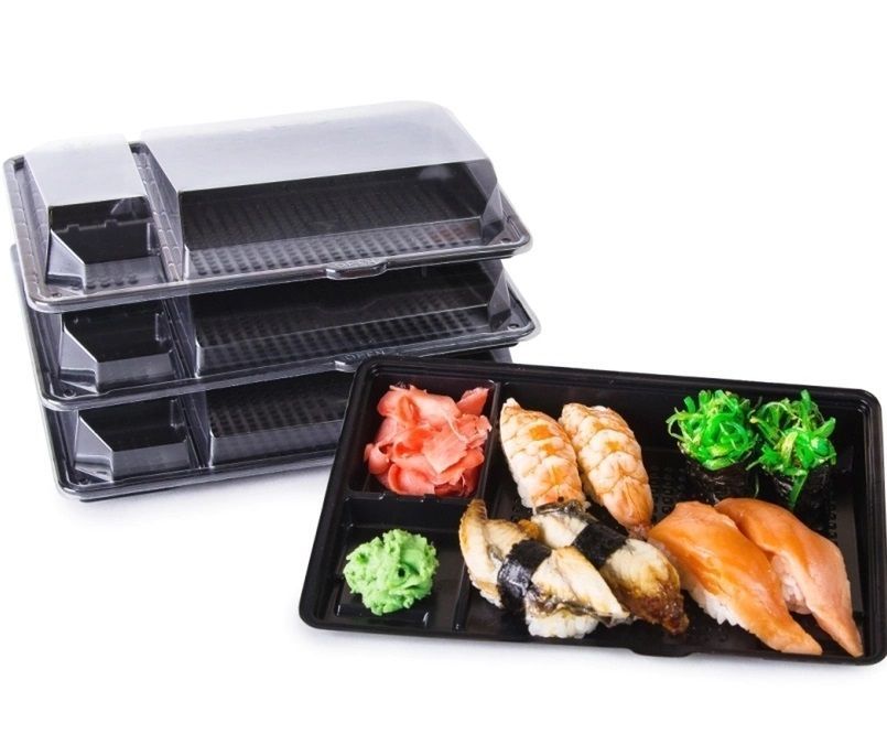 Контейнер  предназначен для фасовки суши, роллов, восточных сладостей, готовой кулинарии. Размер 201х125х36мм