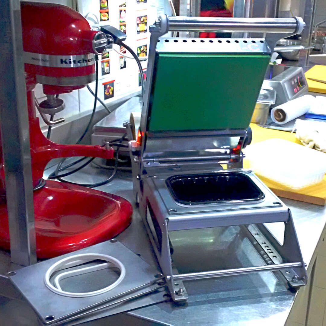 Запайщик лотков  используется на предприятиях общественного питания и торговли для вакуумной упаковки контейнеров с готовыми продуктами или полуфабрикатами.