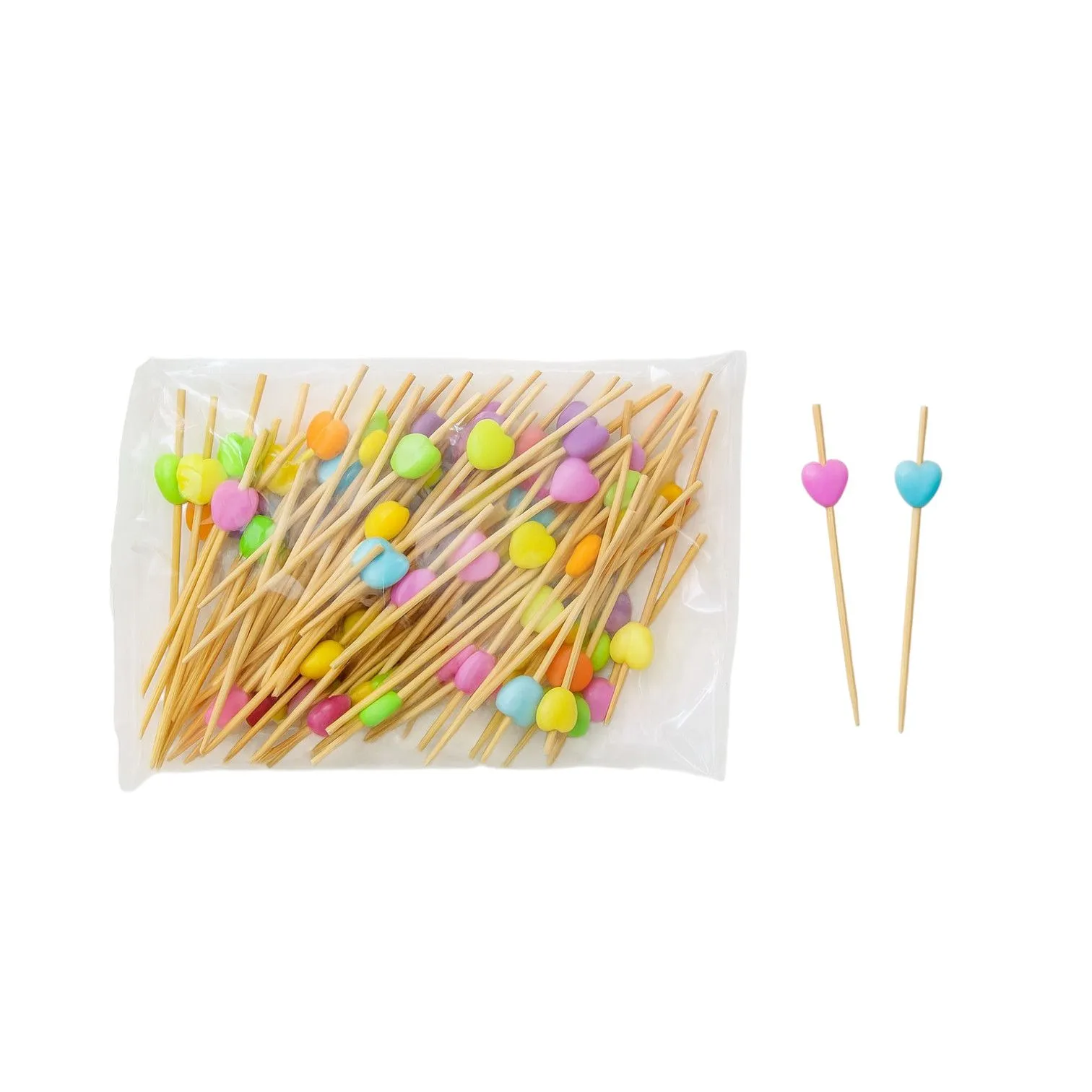 пика бамбук Сердца цветные 7,5 см/100*