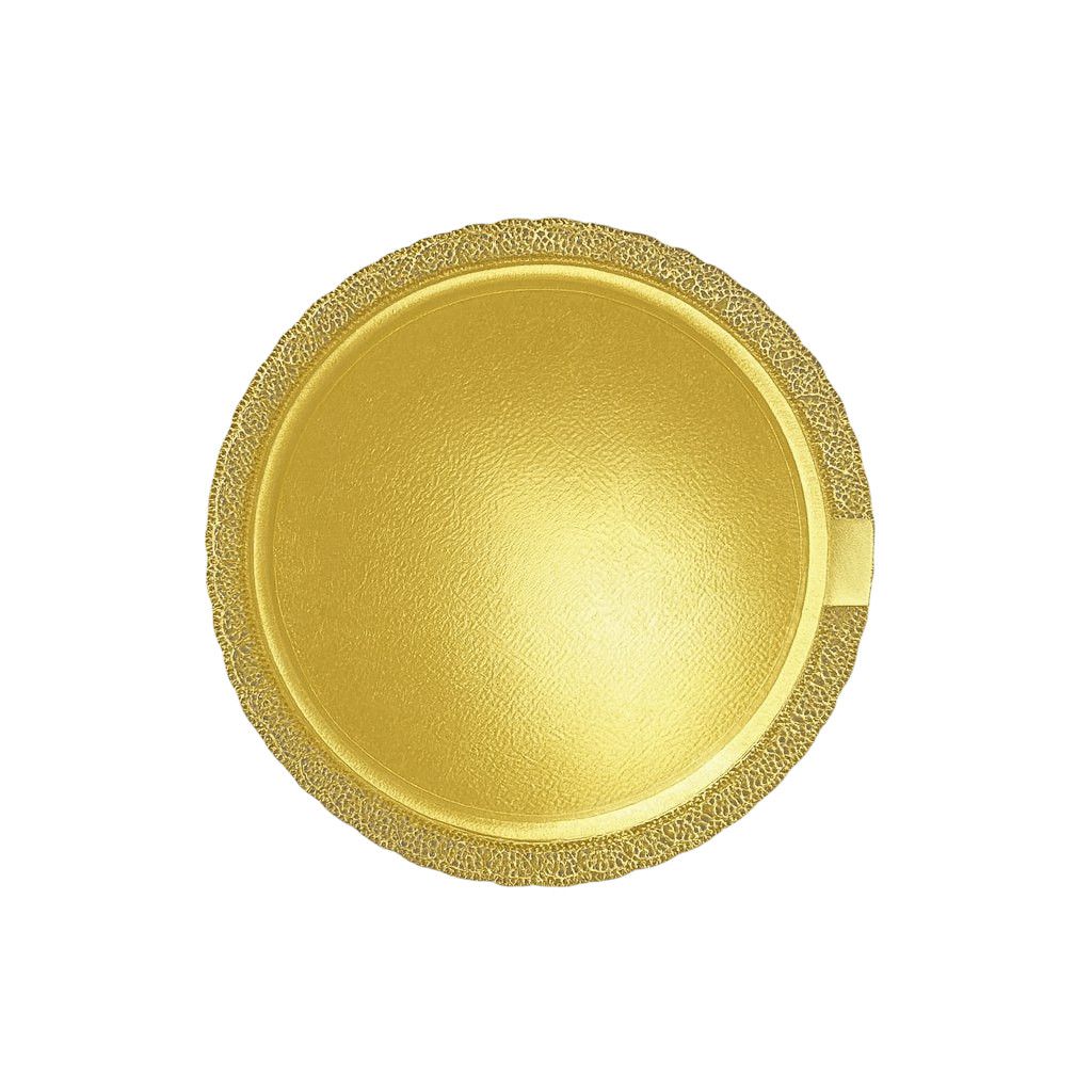 Поднос картонный круглый золотого цвета для тортов и пирожных. Диаметр 30 см. Толщина 3 мм.