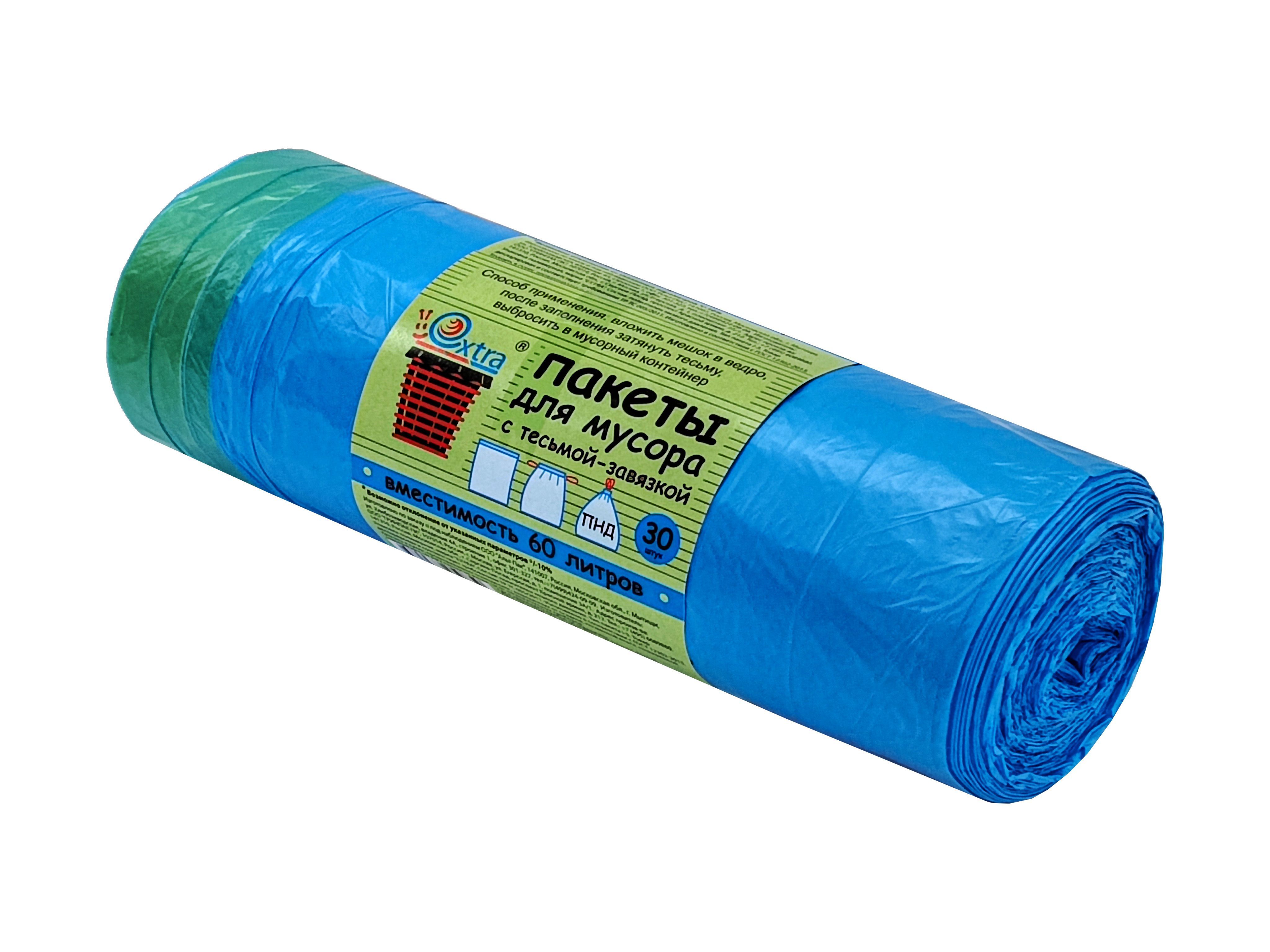 пакеты д/мусора 60л с завязками рулон Extra/30