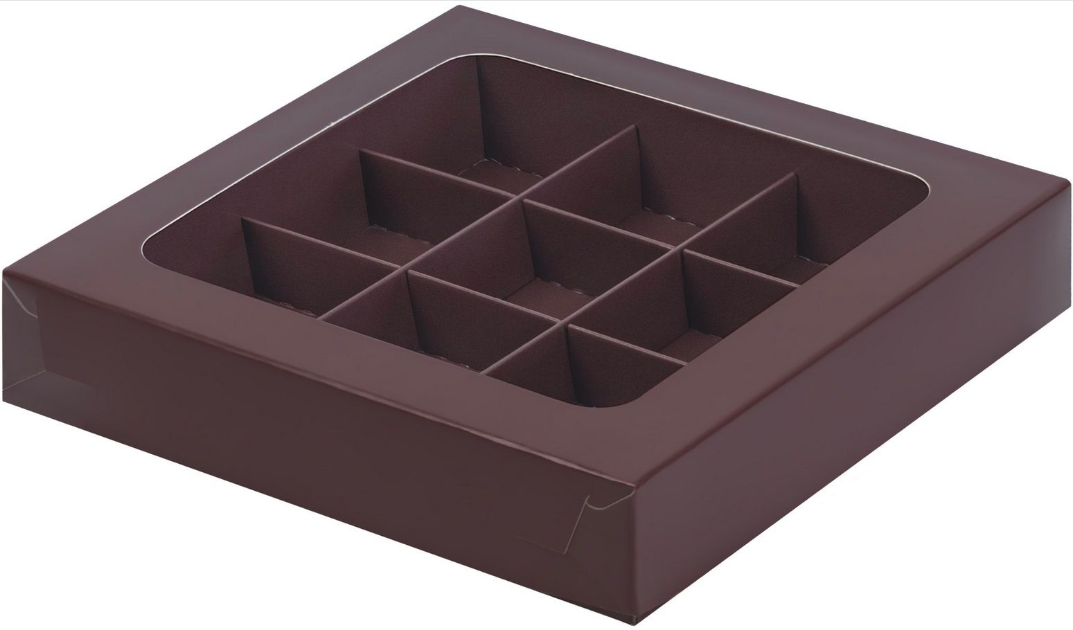 коробка бум. 155х155х30 для 9 конфет шоколад матовая с окном