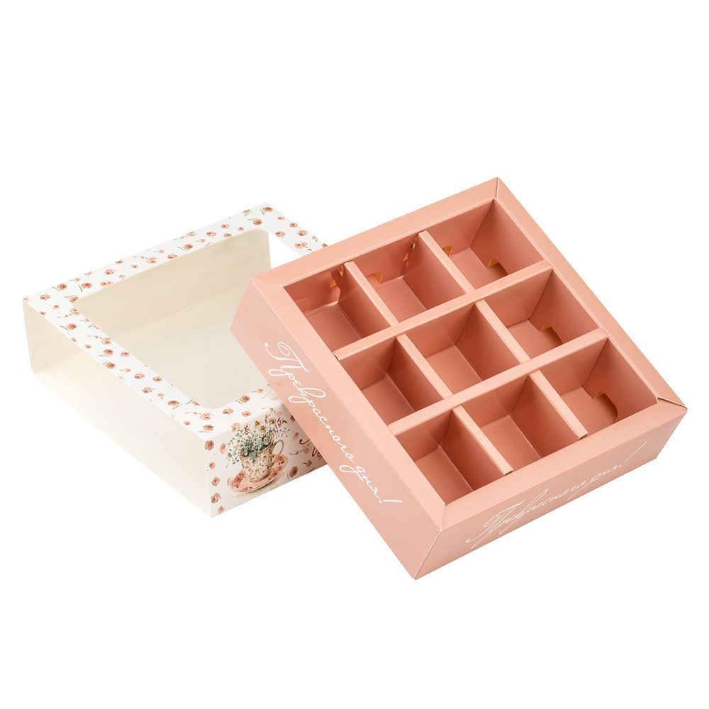 Коробка бумажная для конфет прекрасного дня с окном. Используют для упаковки и транспортировки конфет при доставке.