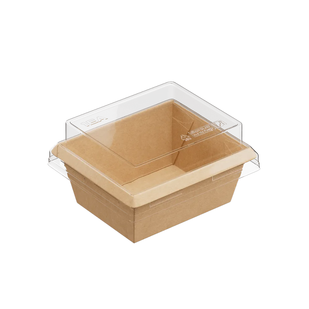 Изготовлен из прочного экологичного картона, имеет сформированный жёсткий борт (без сборки), защёлкивается в один клик без протеканий, устойчив к конденсату, с высокой барьерностью (не прожиривается), разогревается в СВЧ без крышки, произведен без клея и перерабатывается на 100%.