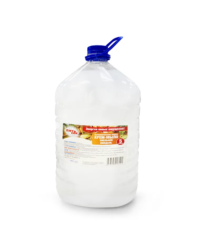 Жидкое мыло (кремовое) «Миндальное» 5 л — мягкое крем‑мыло для рук и тела с ароматом миндаля, предназначенное для ежедневного использования, бережно очищающее кожу и придающее ощущение свежести.