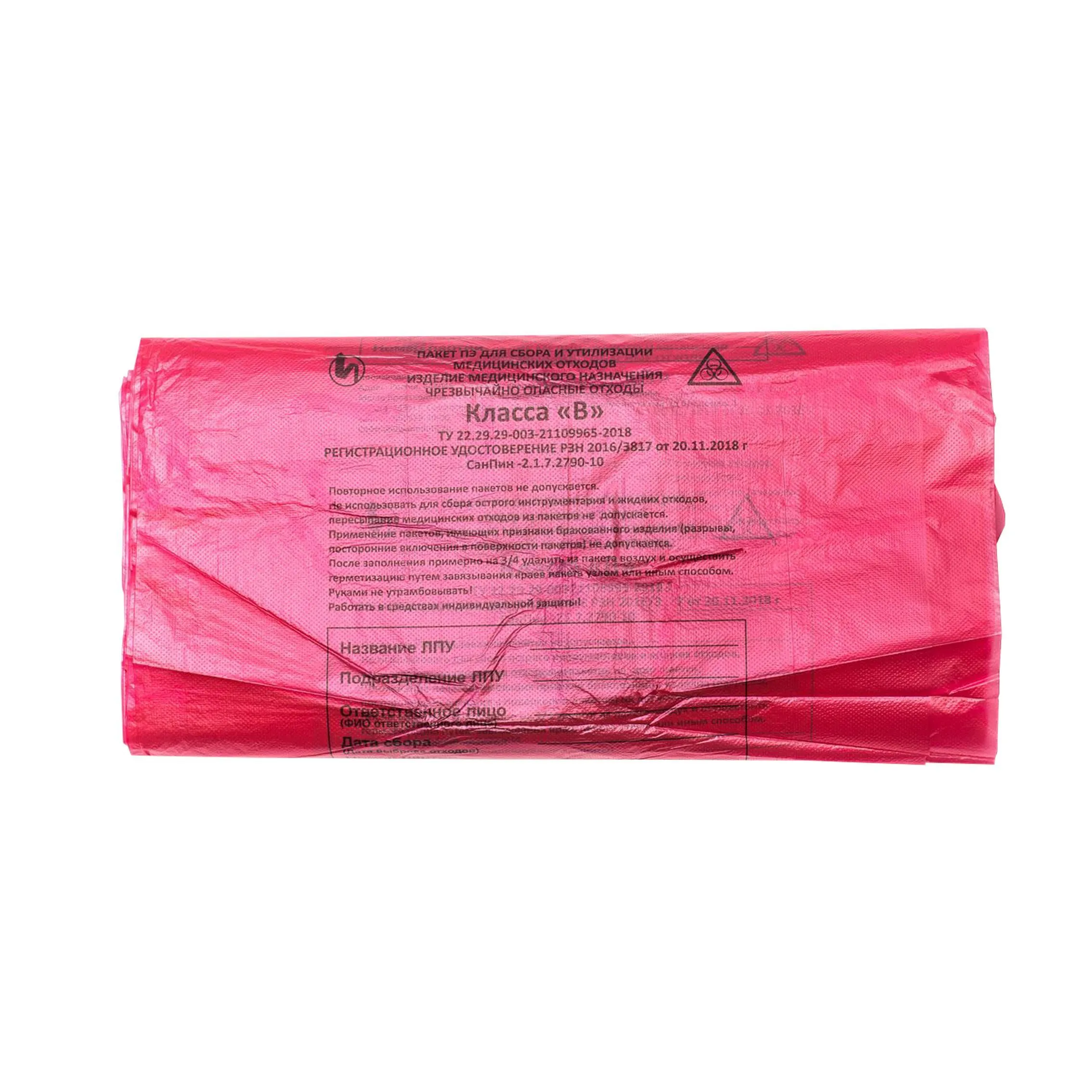 пакеты для медицинских отходов 500х600 30л 18мкм Класс В/100