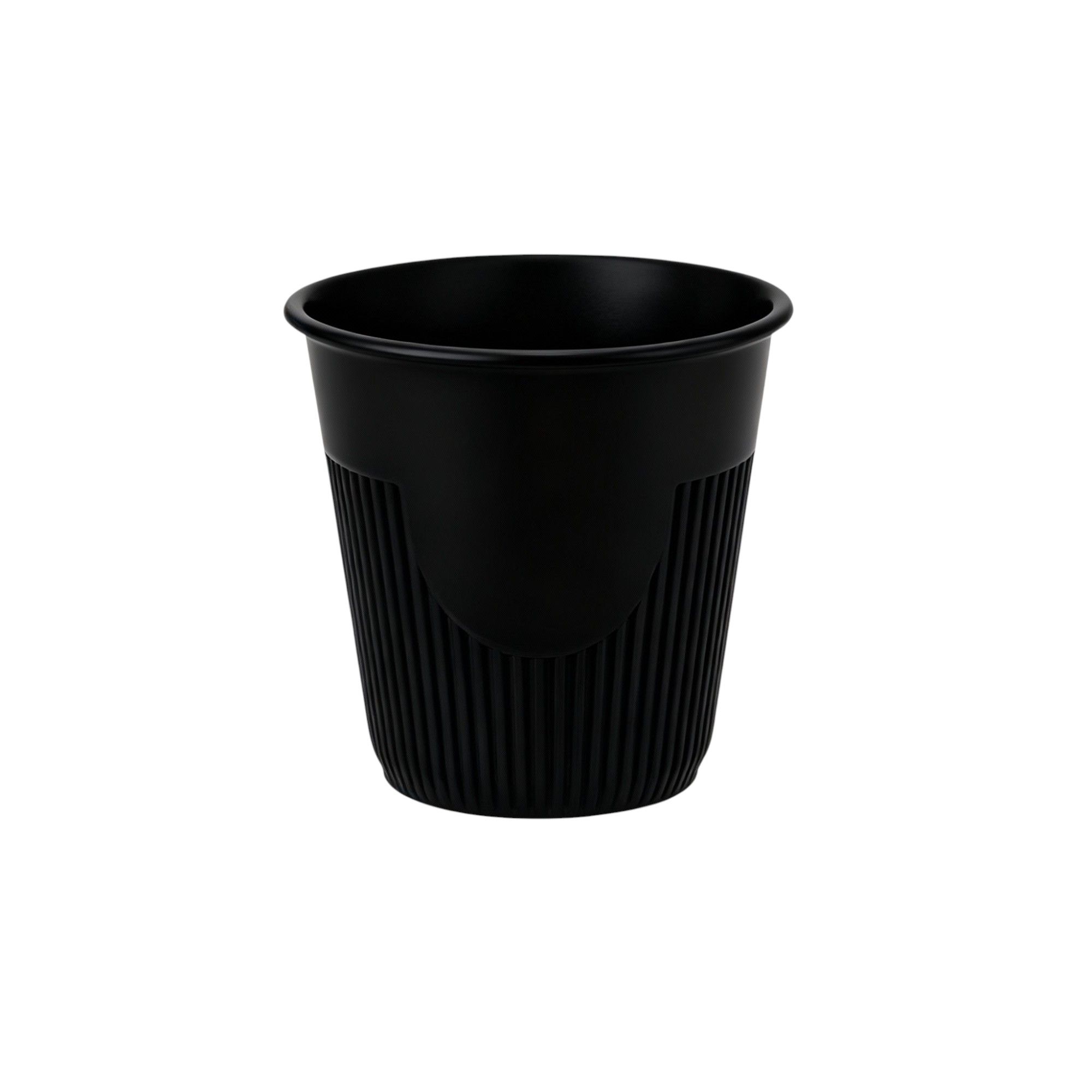 250 мл, диаметр 90 мм, высота 86 мм. Цвет черный.